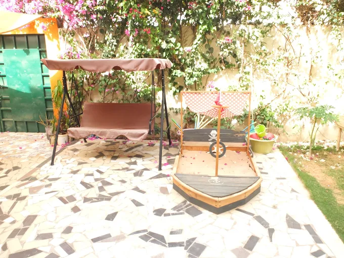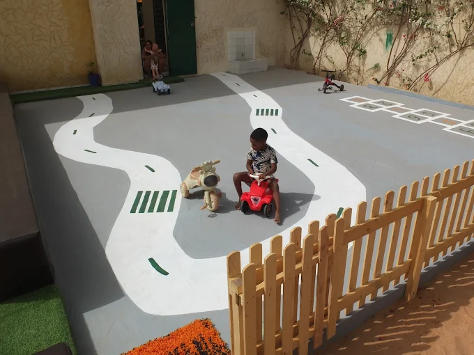Der Kindergarten befindet sich in an der sogenannten Petite Côte in Ngaparou, hinter Sportland in einer freundlichen und ruhigen Wohngegend. Das Haus ist so gestaltet, dass er zwei altersgemischte Gruppen – maximal 16 Kinder – in einer familiären und sicheren Umgebung aufnehmen kann.